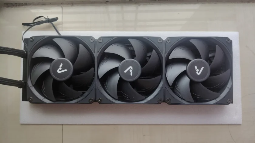 The AI360 embraces a minimalist approach. There’s no RGB, no logos glowing through tempered glass—just clean black finishes and solid construction. The pump housing is functional, not ornamental, and the fans are plain but effective.